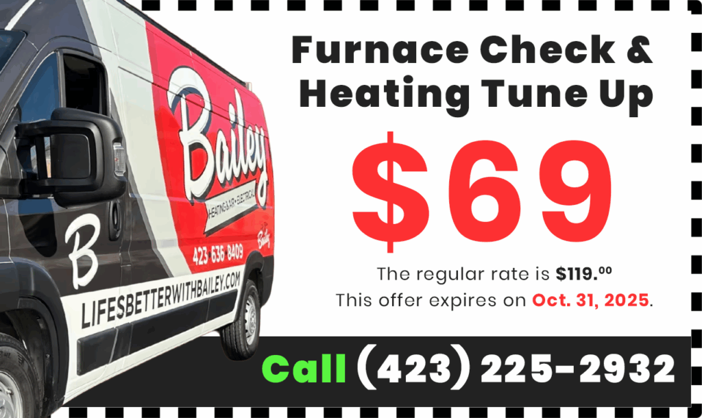 Bailey’s October rate for a heating tune-up & safety check is only $69 (regular rate $119). This offer ends on October 31 • Limited appointments available in October. Call today!